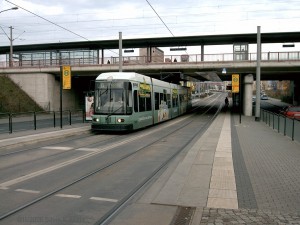 Wegen Fußballspiel geriet 2542 als Linie 13 auf Abwegen und befindet sich im Bild zwischen Rennplatzstraße und Marienberger Straße in Seidnitz. |