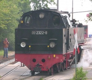 99 2323-6 bei der Einfahrt aus Kühlungsborn in Heiligendamm, Gegenzug wartet