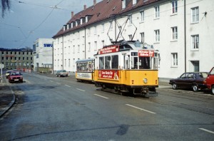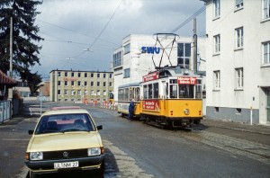 Tw 15 setzt über die südliche Weiche der Ausweichstelle wieder an die andere Seite des Beiwagens um, so dass es nun so aussieht als würde sich der Zug nun wieder Richtung Stadt auf den Weg machen. - Das erste Mal, dass ich hier einmal das Umsetzen um einen Beiwagen außerhalb einer Sonderfahrt beobachtet habe. |