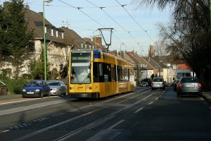 Eine Strassenbahn an der Endstelle Finefraustrasse in Rellinghausen. |
