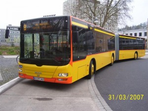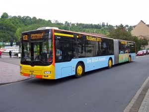 Ein Solaris Urbino 12 als Linie 10 an der provisorischen Endstelle "Arzheim Sportplatz" in Koblenz-Arzheim. |