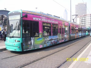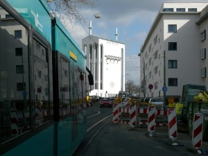 Als Linie 21 an der Commerzbank-Arena von hinten. |