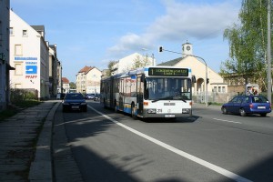 auf der Linie 42 beim Verlassen der Haltestelle Thüringer Weg am Unigelände |