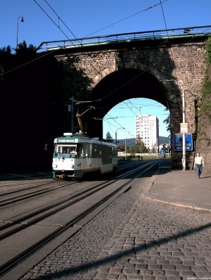 Ein T3 kommt gerade die kleine Steigung zum Kostel hinauf gefahren. |