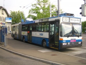 Um mit dem Kurbeli zur Erröffnung des Tram-Depot Burgwies zu gelangen fuhren der Kolege und ich zuerst von der Hardbrücke mit dem 72-er (MB O405GTZ Nr. 106) zum Triemli. Da die GTZ der VBZ noch kein automatisches Leitsystem eingebaut haben (wird ca. in den nächsten 2 Jahren eingebaut). Muss der Chauffeur mittels manueller Kurseingabe die Zielanziege ändern, anscheinend tat er dies zum Zeitpunkt der Aufnahme nicht. Oder als anderer simpler Grund, die Anzeige hatte einen Hänger drin. |