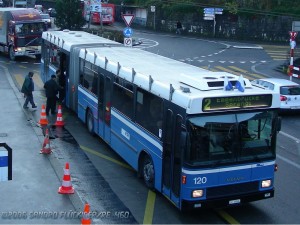 Diese Szene war am 19.5.07 zum 3. letzten mal zu sehen. Denn am 8.6.07 gegen 15:10 Uhr verliessen und die Volvo/Hess B10M Nr. 117, 118 und 120 endgültig in Richtung Biel. Vom 7.12.06 bis zu jenem Tag wurden die Busse nur mehr für Shuttledienste zum Stadion eingesetzt. |