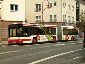 Als Linie 16 zwischen den Haltestellen "Gutenbergstrasse" und "Markt". Es gibt noch engere Stellen auf der Linie 16. |