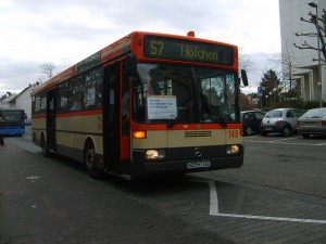 Der letzte noch verbliebene O405 der Mainzer Verkehrsgesellschaft als Linie 71 an der Endstelle "Gutenberg-Center" in Mainz-Bretzenheim. |