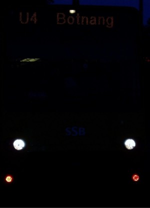 Begegnung mit Seilbahnwagen Nr. 2 in der Ausweiche auf halber Strecke. |