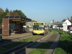 Wagen 3635 bei der Einfahrt in die Haltestelle Feldhaushof (Spurbusstrecke) |