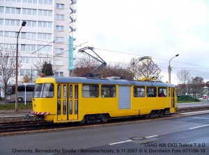 dem Vernehmen nach wird die Fahrleitung mit Glysantin (oder Vergleichbarem) eingeschmiert um Fahrleitungsvereisungen zukünftig zu vermeiden. Zu erkennen sind die Zuführungsschläuche und der Kasten mit der Schmiereinrichtung. |