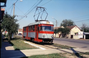 Osten pur 2005 - Gebäude im typischen graubraun - ein alter Tatra T 4 R und ein mausgrauer Trabbi - alles in der Nähe der Endstelle Pt Romana |
