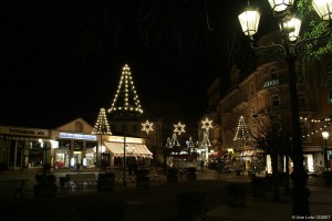Ein Teil des Ausblicks von der oberen Station der Dresdner Schwebebahn auf die Stadt, zu sehen gibt es den Stadteil Blasewitz, den Stadteil Johannstadt, die Altstadt, die Neustadt, sowie die dahinterliegenden Stadtteile Löbtau, Cotta, Naußlitz, Gorbitz und Gompitz am oberen Bildrand in etwa 25km Entfernung. |