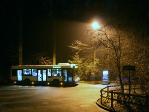 Der letzte Kurs des 11ers für den 3. Januar 2007 - Aufgenommen um 19:44. Die Erschliessung des dortigen Wohngebietes übernimmt ab 20:19 (im Dattenberg) die Linie 10. |