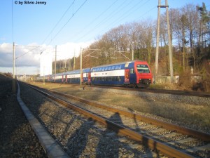 Hier fährt ein DPZ mit der schiebenden Re 450 091-4 über die Tössbrücke bei der Tössmühle die sich zwischen Winterthur und Kemtthal befindet. |