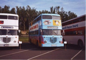 Anlässlich des Jubiläums "100 Jahre Büssing" fand am 20. und 21. September 2003 bei MAN in Salzgitter eine Fahrzeusstellung mit vielen historischen Büssing-Nutzfahrzeugen statt. Zu gast war auch dieser ehemalige BVG-Doppeldecker mit der Nummer 1623. Im Jahre 1964 gebaut war er bis zum Frühjahr 1978 noch bei der BVG im Einsatz, bevor er, wie so mancher anderer D2U, als Hotelbus weiterverwendet. Später gelangte er in Privatbesitz. Seit einiger Zeit befindet er sich jetzt sogar wieder auf Berliner Stadtgebiet. |