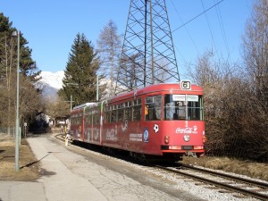 Auf der Überlandlinie 6 erreicht Tw 51 die Endhaltestelle Igls. |