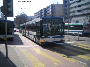 Am Sonntag fährt ab und zu ein Gelenkbus auf der Linie 1. Ansonsten trifft man eher Anhängerzüge mit NAW oder Scania als Zugfahrzeuge. |
