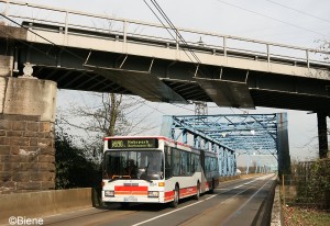 Einer der 14 O 405 GN von 1996 im Dienst der Stoag, mit CE-Lackierung als SB 94 auf der Kreuzung Höhenweg - Buchenweg. März 2008 |