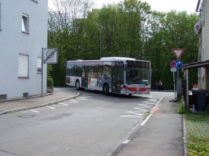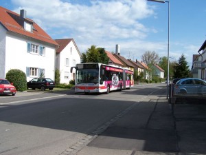 Ein wahrscheinlich nicht alltägliches Bild: Citaro G 054 auf linker Fahrbahn überholt eine schaar von Pferden. Aufgenommen kurz nach der Haltestelle Weingarten Krankenhaus Richtung Ravensburg. |