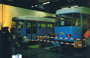 Der Großzug 507+508+754 war nebeneinander aufgereiht. Außerdem stand noch Ikarus 335, Citaro 72 und ein Döhler-Bus dort. Ein Jahr später war der Großzug aus 401+402+713 an gleicher Stelle aufgereiht. Lustig auch die Beschriftung "4 Goetheplatz". Die hat nämlich nie ein Tatra tragen können! |