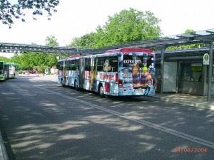 Die meisten Busse von denen haben Karlsruher Autokennzeichen. |