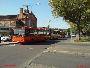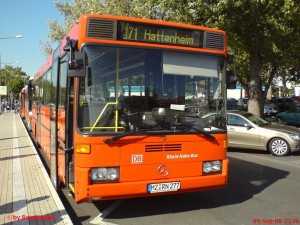 Wagen MZ RN 213 nimmt gerade als auf der Linie 274 die ersten Fahrgäste auf. Ziel der Fahrt ist hier leider unbekannt. |
