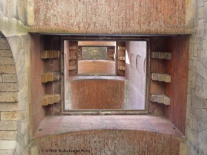 | Unter der Brücke, Blick durch die vielen Bögen |