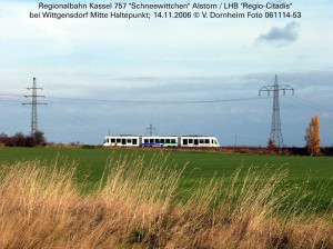 mal ein Bild mit unvollständig zu sehenden Fahrzeugen. Dafür ist die "Dekoration" am Schneewittchen gut zu erkennen. Die Zukunft findet aber bei der City-Bahn wohl ohne Regio-Citadis statt. |