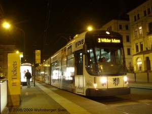 am 31.12.2008 um 23:11 die vorletzte Bahn nach Laubegast im Jahr 2008 |