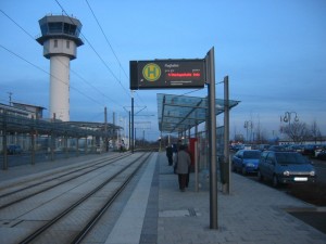 Tram-Haltestelle Flughafen Erfurt mit Fahrzielanzeiger |