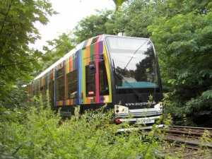 Den Anfang mache ich mal mit der neuen Phantasialand-Bahn, die am 18.8. auf der Siegburger Str. fuhr... |