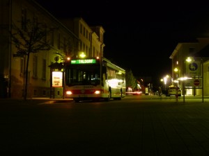 Der Mercedes-Benz O 405 G wird um 0 Uhr zurück nach Alttann fahren. Solange steht das Fahrzeug hier am Bahnhof in Ravensburg. |