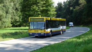 Die Linie 5 in Neu Ulm an der neuen Hochschule, Haltestelle Washingtonallee. |