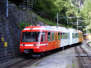 Aufgrund von Bauarbeiten war der Mont-Blanc-Express vorrübergehend nicht durchgehend befahrbar, sodass auf einer Teilstrecke dieser Altbauwagen Auslauf erhielt. |