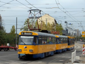 auf der Behelfsbrücke über die Eisenbahnstrecke unterwegs Richtung Alte Messe. |