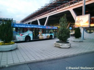 Flughafenlinie mit Airlinewerbung am Flughafen |