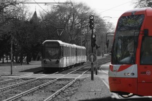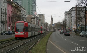 Typische Situation an der Haltestelle Weyertal der Linie 9 in Köln-Sülz.