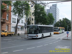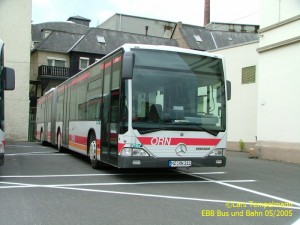 Der Citaro GÜ Nr. 401, Bj. 2000, macht auf dem Abstellplatz am Ingelheimer Bahnhof Pause. |