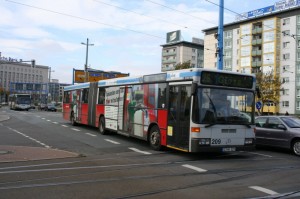 Noch mit Schleife konnte ich ihn am 31.7.02 an der Endstelle Chemnitzer Straße der Linie 49 ablichten. Heute fährt er nur in weis rum. |