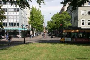 Die Besonderheit an diesem Bild: Wegen Gleisbauarbeiten am Europaplatz waren die Linien 3 und 6 umlauftechnisch verknüpft. Dieser Zug fuhr zum Mühlburger Tor, nutzte die dortige Schleife und fuhr dann weiter als Linie 6 nach Daxlanden. |