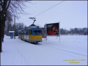 Im Hintergrund ein leerstehendes zerfallendes Haus, was typisch für das Stadtbild von Gotha ist. |