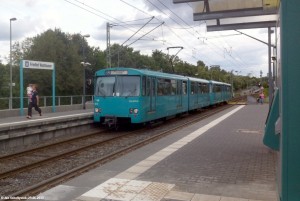 Auf der Riederwald-Enkheim-Strecke werden die U2-Wagen noch eine Weile zu sehen sein, denn von der U4 ist noch gar nichts umgebaut und so lange können dort keine U5-Wagen fahren. Auf der restlichen U7 werden sie aber inzwischen seltener. |