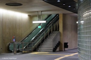 Die östliche obere Verteilerebene mit dem Ausgang zur oberirdischen Haltestelle der Linien 1,7 und 9. |