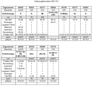 Güterzug Fahrzeiten KBS751 |
