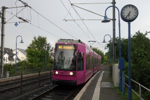 Wegen Gleisbauarbeiten in Oberkassel wendete die Linie 62 am 15.8.14 in Ramersdorf auf Gleis 3. |