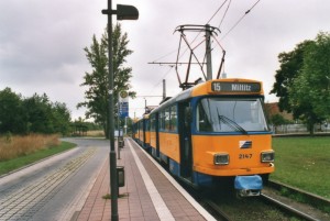 Straßenbahn Tram Leipzig Leipziger Verkehrsbetriebe LVB CKD Tatra T4D 2147 Meusdorf 2014