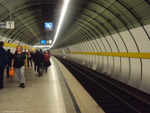 Hier trennen sich die Wege von U4 und U5: Die U4 fährt in Richtung Osten weiter zum Arabellapark, die U5 biegt in Richtung Süden ab in die 70er-Neubausiedlung Neuperlach. |