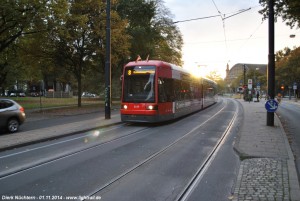 Die Linie 6 durchfährt in Richtung Universität gleich die Unterführung unter dem Hbf - 01.11.2014 |