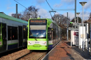 Links neben der Tram sind einige Signale zu sehen. Die 50 auf der Rautenförmigen Tafel ist ein Geschwindigkeitssignal, vergleichbar mit unserem Lf7, es bedeutet, dass ab dort die Höchstgeschwindigkeit 50km/h beträgt. Ja, überall in Großbritannien sind die Geschwindigkeiten in Meilen angegeben, außer natürlich bei der Tram in Croydon! Hier ist es in km/h!!! Ebenso verfügen alle Trams über km/h-Tachos.